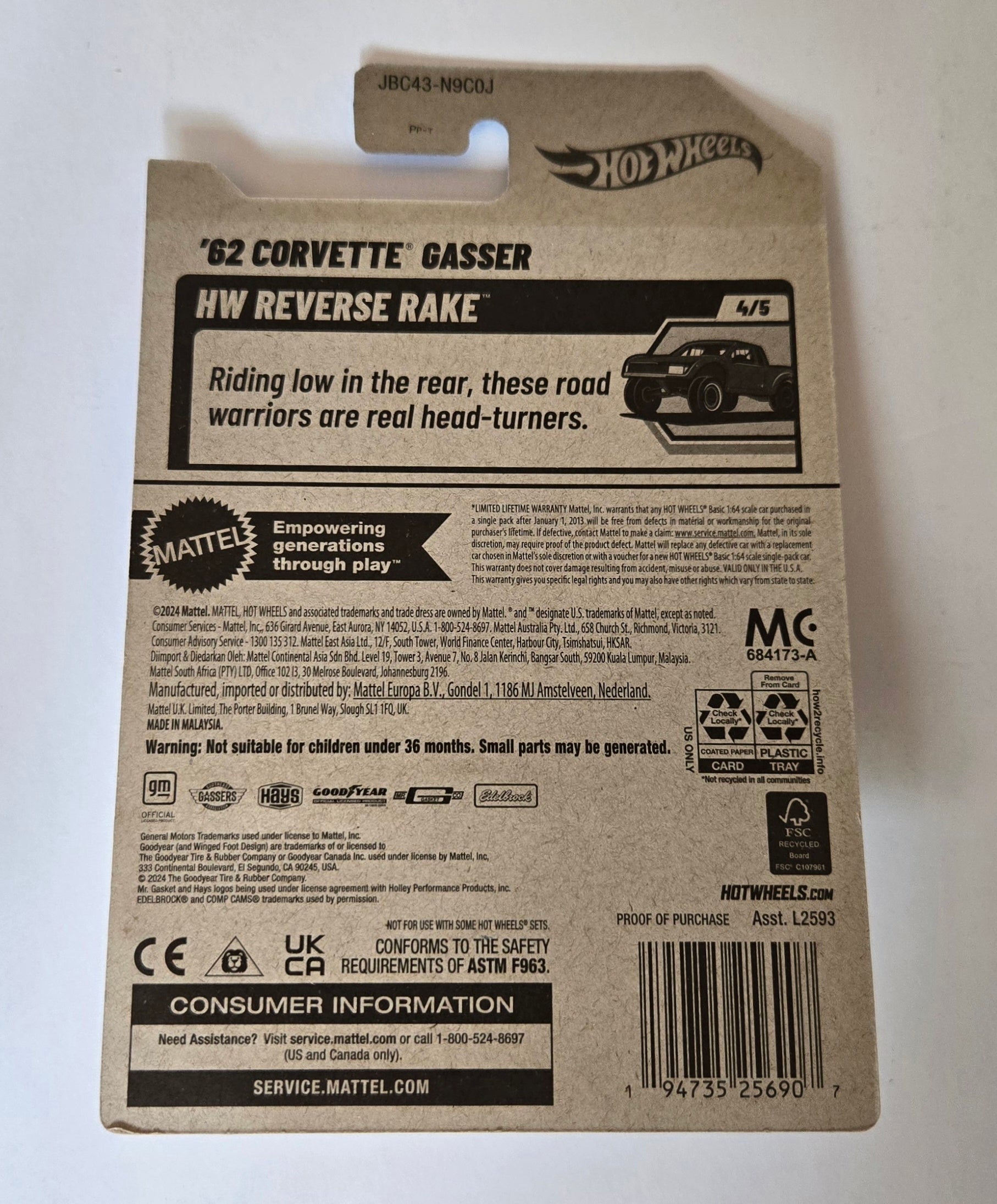 Hot Wheels™ Reverse Rake™, 182/250, ages 3+.